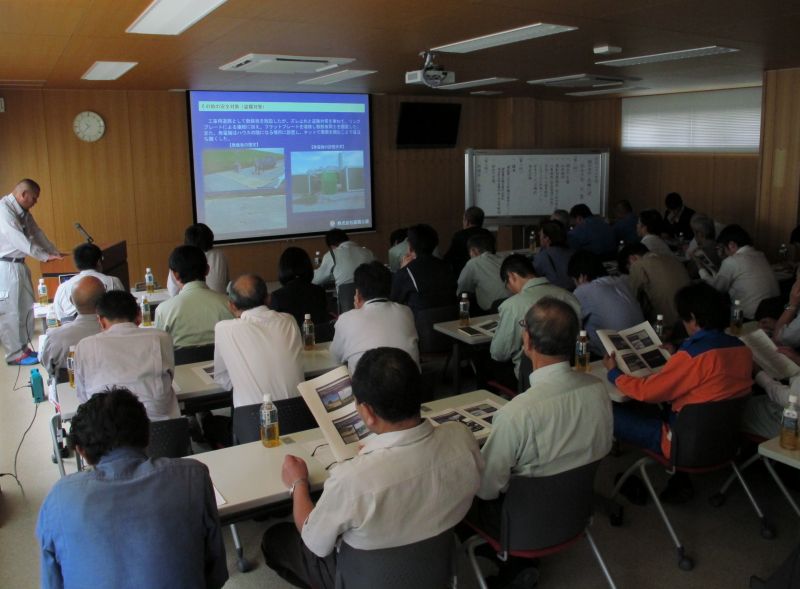 会社情報 平成27年度 株式会社高橋土建 安全大会を実施しました。 2015.10.03 2022.03.10 実施日:平成27年10月3日(土) 実施場所:株式会社高橋土建 本社2F会議室 参加人数:50名 【安全対策・安全活動について】】 各現場担当者より工事を進める上での安全対策や、技術上の力点について発表し、協力業者・社員の安全意識の向上を図りました。 【講演】 建災防埼玉支部 白石事務局長をお招きし、「建設業における労働災害の防止について」というテーマでご講演頂きました。 川越県土整備事務所より橋梁の点検業務について感謝状をいただきました。 平成27年10月6日(火) 彩の国ロードサポート団体として、歩道清掃活動を実施しました。